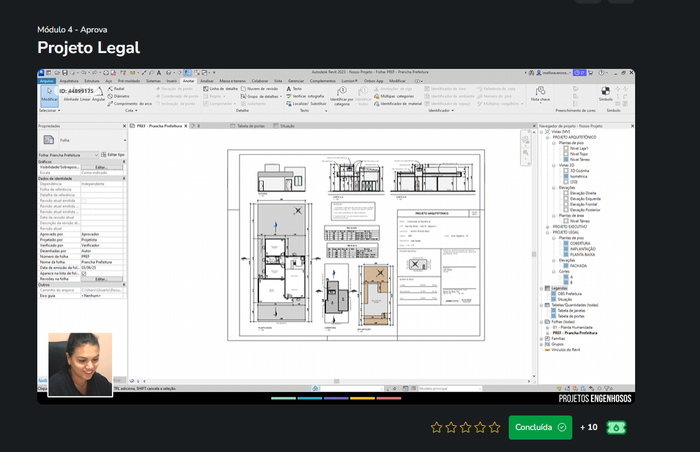 Ela ensina Revit do zero, mas de forma estratégica. Você não vai aprender todas as funções do software, apenas as essenciais para criar projetos rápidos e de alto valor. Esta mentoria não é um curso de Revit, e sim um direcionamento para você migrar para o software de uma vez por todas.
